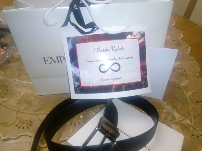 Ayer enviamos a Raphael el regalo de la asociación con motivo de su cumpleaños. Os adjuntamos una foto para que lo podáis ver. Se trata de un cinturón negro reversible que podéis observar con una bonita hebilla plateada y acompañado con una postal de felicitación creada por Gerard Pujol. Imaginamos que habrá llegado sin problemas Esperamos que os haya gustado el regalo.