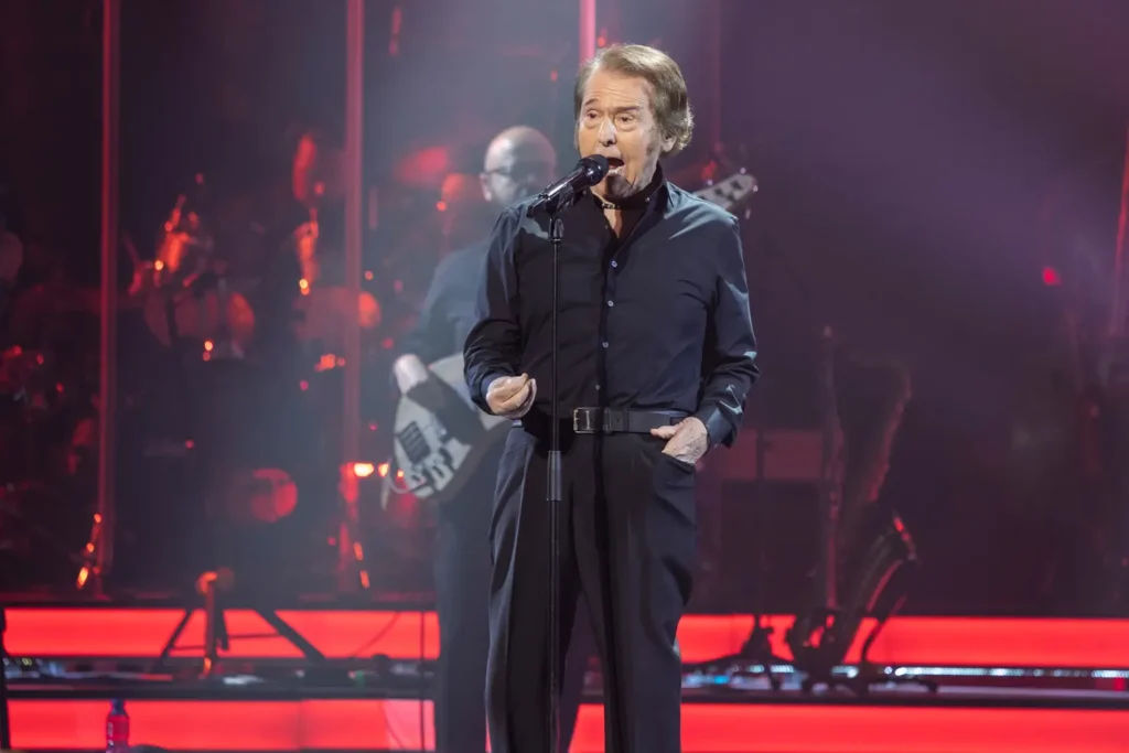 Este domingo en el Euskalduna actuó respaldado por diez músicos (entre ellos dos coristas que además tocaban chelo y violín, como el sábado las chicas de Marta Sánchez en el Campos), o sea que en total eran once en tarima con él, y Raphael cantó 26 temas en 107 minutos, de ellos cuatro de su último disco, el afrancesado 'Ayer… aún', editado por la multinacional Universal en noviembre de 2024, justo antes de que sufriera el grave ictus que únicamente la paralizó, le frenó, medio año.