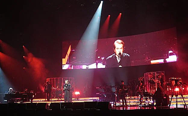 Tuvo un pasaje melódico íntimo destilado con voz primorosa ('Amo', 'Si no estuvieras tú' algo Julio Iglesias, etc.), y la cita dominical subió un escalón en la citada 'Somos', otra interpretación dramática y borrascosa. Sin perder de vista los dos teleprompters con las letras, el maestro repasó su elepé parisiense (tres de Edith Piaf consecutivas: 'Padam, padam' teatral y peliculera, 'La vida en rosa' muy de musical, e 'Himno al amor' muy leído), pisó el tango con 'Malena' de Aníbal Troilo, y en 'Estuve enamorado' en pantalla se le vio tan guapo como Pierce Brosnan.
