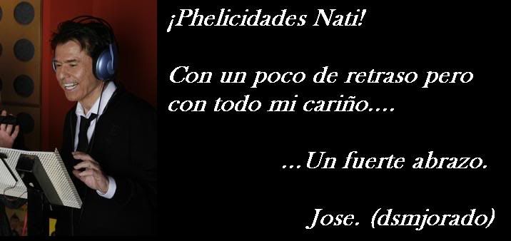 NATI PHELIZ CUMPLEA?OS TE DESEMOS TODA LA FAMILIA . DESPUES DE LA CENA QUE HEMOS TENIDO JUNTAS VIENDO ADEMAS EL PROGRAMA DE RAPHAEL NO SE PUEDE PEDIR MAS AS? QUE